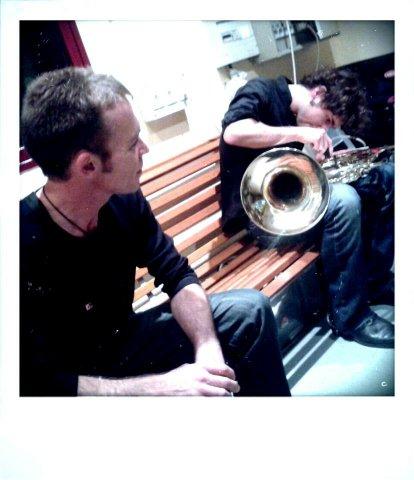 #NEWS OCTOBRE 2012Les sessions studio ont commencé au studio du Hangar à Ivry avec Jean-Sébastien Lacroix (sax) et Jérémie Bernard (cor, buggle, trompette) du groupe Haut Debit Brassband. Un grand merci Lino l'ingé-son à toute l'équipe du Hangar et du Tremplin ! |